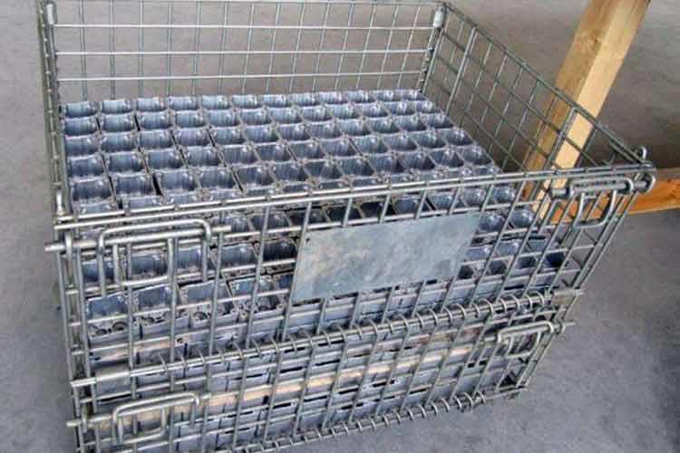 鐵絲籠的主要原材料是高線拉成的鋼絲,一般絲徑是5mm,6mm,6.4mm。網(wǎng)片焊接的網(wǎng)目間距一般為50×100,100×100,50×50。倉儲籠底部采用U型鋼焊接而成,U型鋼是冷軋帶鋼軋機軋制而成,底部四角采用沖壓件一次沖制而成。鐵絲籠采用Q195高線作為原材料,經(jīng)冷拔成型材。再通過碰焊形成半成品網(wǎng)片。在制作成網(wǎng)片后,可采用鍍鋅或噴塑進行表面處理(鐵絲籠大多數(shù)采用鍍鋅處理),表面處理完畢后就可以進行組裝,即可制作成成品。