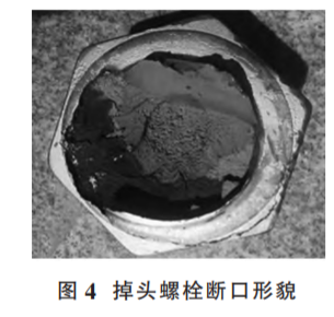 綜上分析,在螺孔與光孔嚴(yán)重不同軸的情況下安裝,當(dāng)螺栓無(wú)螺紋桿部與光孔嚴(yán)重干涉無(wú)法擰緊 時(shí)強(qiáng)行扳擰, 使螺栓承受過載的拉伸、扳擰扭力以 及干涉剪切等綜合作用,最終導(dǎo)致螺栓斷裂。