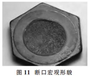 (1)失效案例。失效案例如圖10所示。該螺栓直徑規(guī)格為M36,性能等級(jí)為8.8級(jí),材質(zhì)為 42CrMo,表面處理為鍍鋅,斷裂發(fā)生在安裝后。