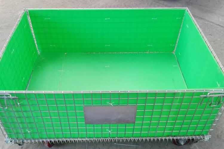 倉儲籠主要材料為低碳鐵絲、槽鋼、熱軋鋼板等。倉儲籠的外形感覺輕巧,籠體除底框外皆有鐵絲碰焊成的網(wǎng)片組合而成,網(wǎng)片與網(wǎng)片、網(wǎng)片與底框靠小連接件連接,可活動。倉儲籠空籠時可折疊存放,充分利用空間。倉儲籠前面可打開,在堆垛后能取物,堆垛時承重在側(cè)面的網(wǎng)片上。倉儲籠目前已完全具備可堆垛性、可折疊性及可搬運性,日益成為物流流通的一種重要的標(biāo)準(zhǔn)物流容器。